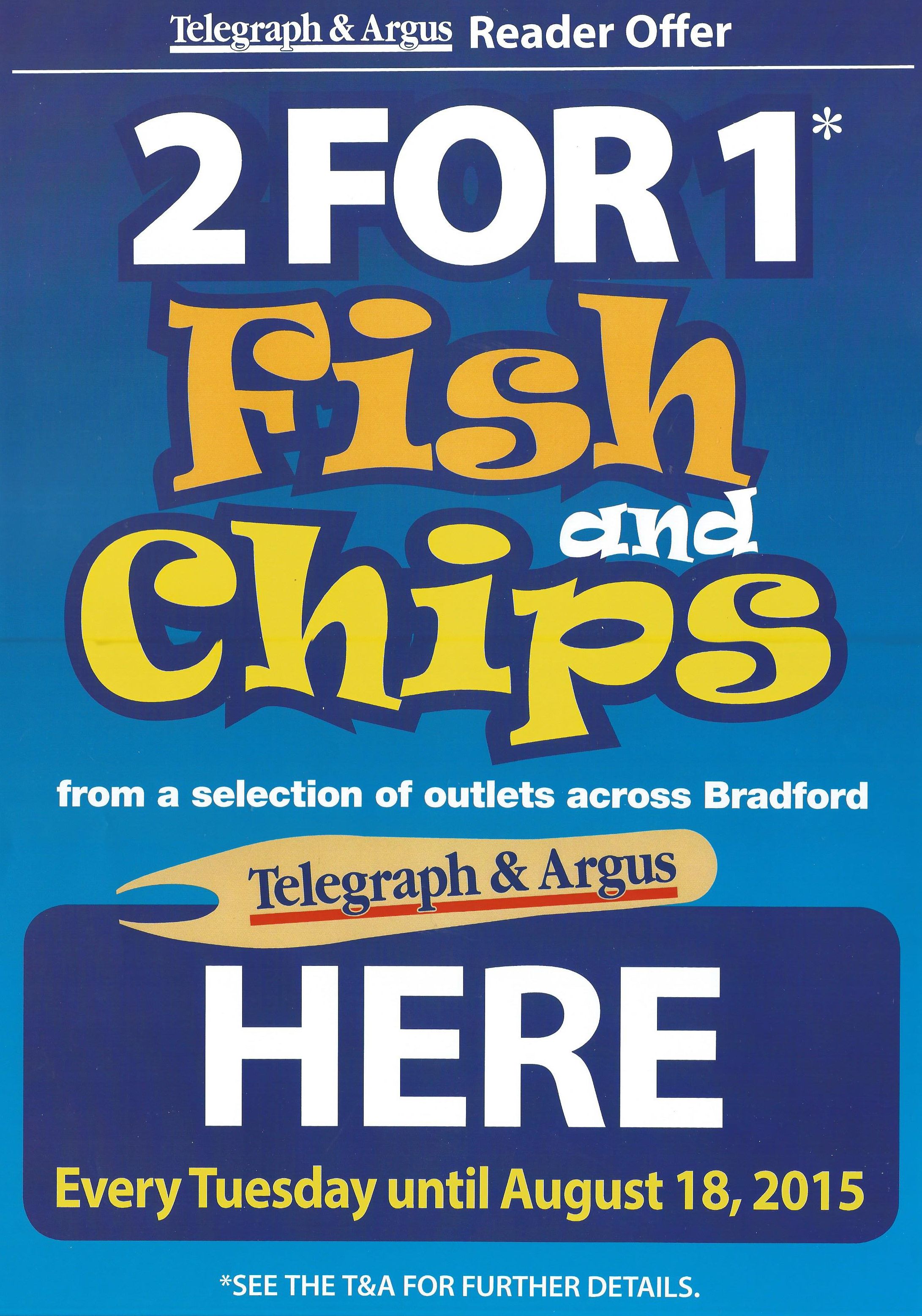 This offer is being repeated every Tuesday until the 18th August (now extended until the 25th August!) so make Tuesday your FISH & CHIPS day, and save money too!